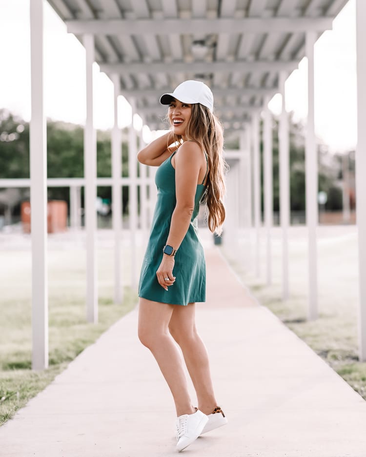 If you wish to really feel female and flirty whereas being energetic, an activewear gown is only for you! The beauty of these is you possibly can go from the fitness center to operating errands with out wanting such as you’re nonetheless in garments you don’t care about which is a plus in my guide. What we love most about an activewear gown is the built-in shorts – hiya mobility! This implies you may as well put on a shorter hemline which helps elongate your petite body.