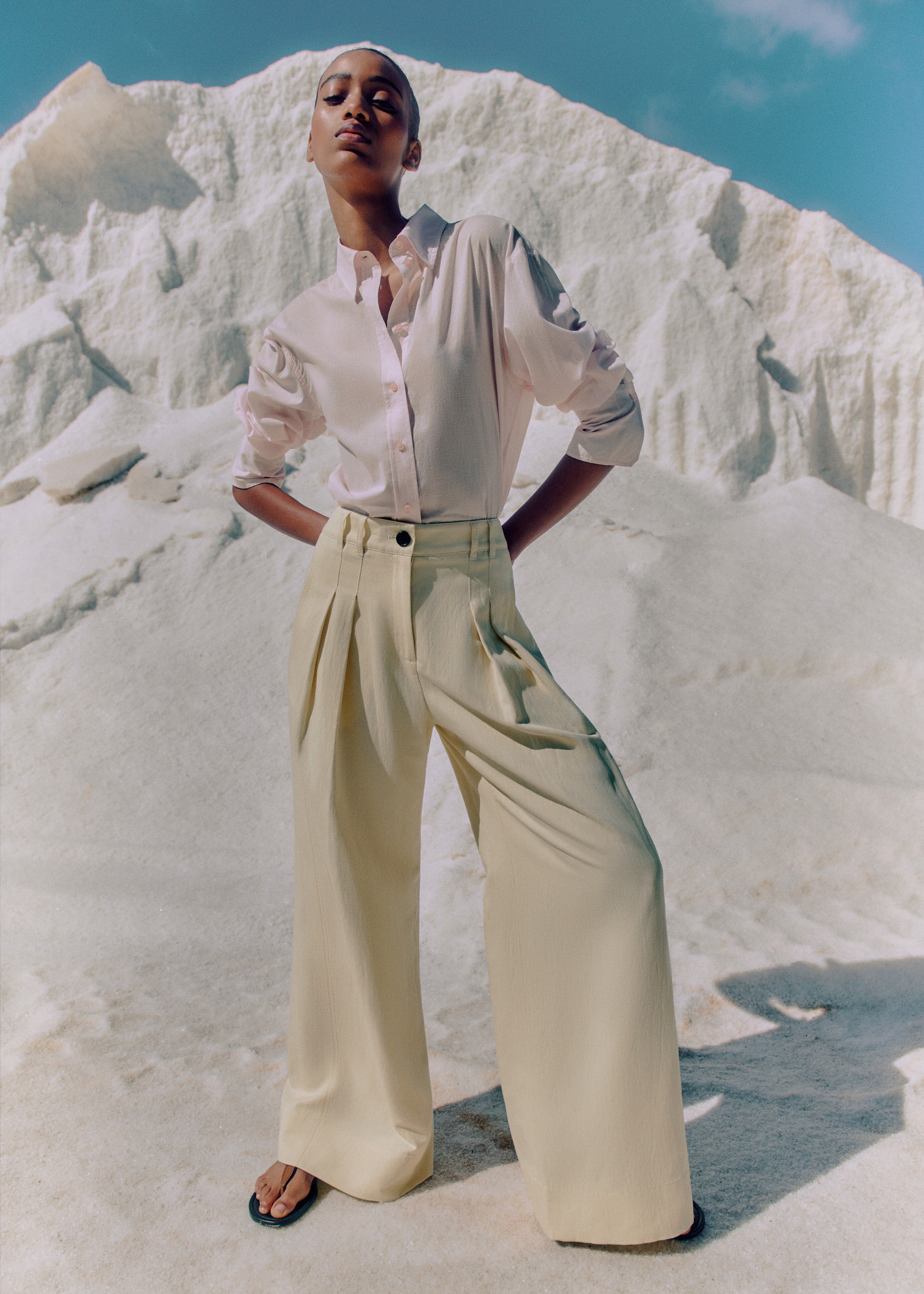 Model Notes: Swap your wool swimsuit for a linen one, or for a extra relaxed look, go for a co-ord. Both method, doubling up on the linen will maintain you cool when the climate is not.
