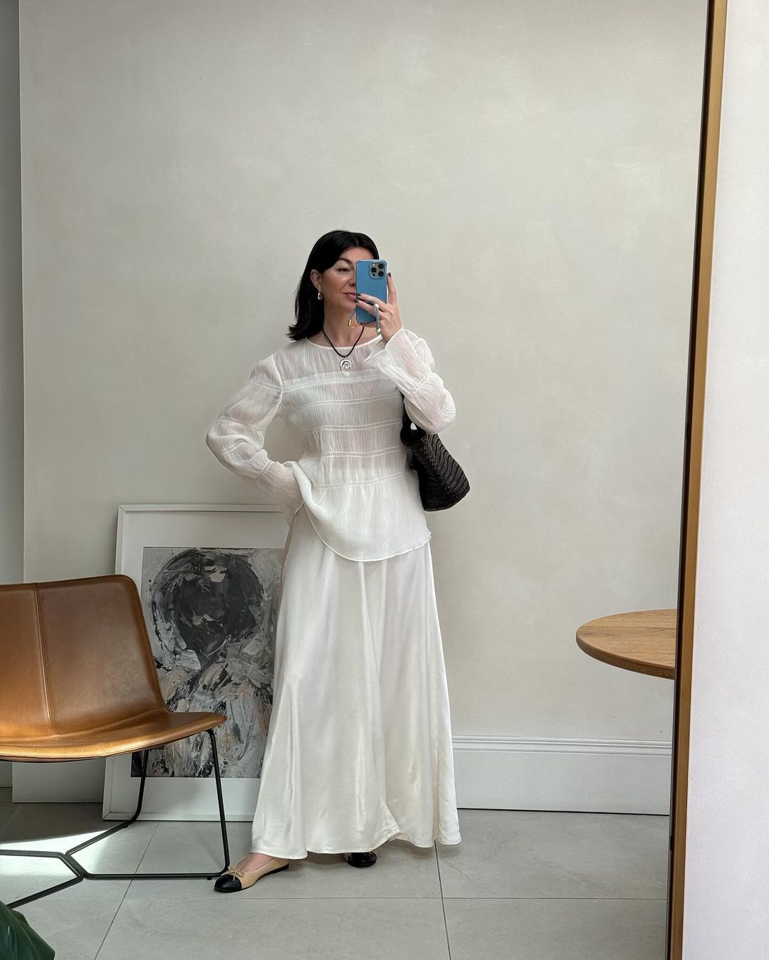 Model Notes: A silky skirt and a shirt is probably one among my favorite (and essentially the most easy) work seems, and for days when a blazer is just too heat, I really like the look of an extended, semi-sheer shirt (with a tank vest beneath if wanted). You’ll be able to simply put on this from the workplace to this point evening.