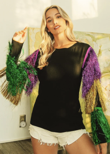 Mardi Gras Fringe Sweatshirt Outfit