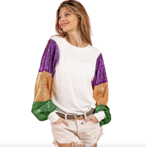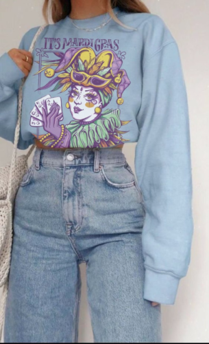 It doesn’t get easier than this Mardi Gras sweatshirt, however the look is made 10x extra thrilling because of its tremendous cute design. Pair this sweatshirt with some cute denim shorts, and you’ll have such a candy and informal combo!