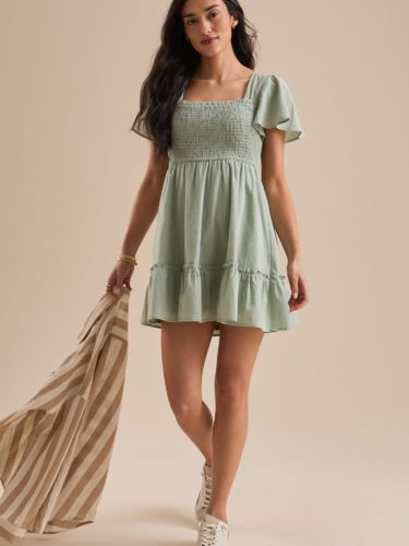 For a candy, girly St. Patty’s Day look, this sage inexperienced babydoll gown is a darling alternative. It has a smocked bust, ruffled hem, and flutter sleeves that add a dainty flare.