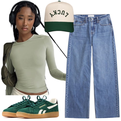 For those who don’t wish to go all-out for St. Patty’s Day however nonetheless wish to present some spirit, this laid-back look is for you. Hit campus in some low-rise, loose-fitting denims paired with a gentle inexperienced long-sleeve t-shirt. This sage inexperienced crew neck high is a extra impartial shade of inexperienced, making it an on a regular basis staple piece you may put on a lot outdoors of this vacation.