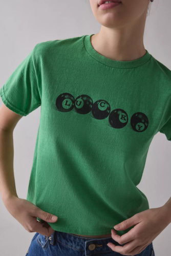 Fairly certain I discovered the proper t-shirt to put on on St. Patrick’s Day: this inexperienced graphic tee with “Fortunate” spelled out in 8 balls. It has a slim, shrunken match with a classic vibe that makes it look like it might have been scored at a thrift retailer (if I didn’t know higher myself).