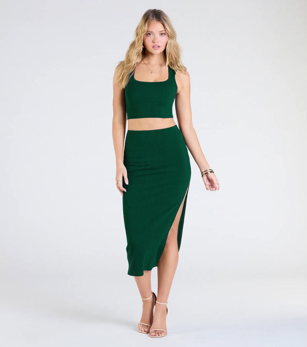 Want a dressier search for celebrating St. Patrick’s Day? Do this inexperienced two-piece set (offered individually) that includes a ribbed knit cropped tank high and matching rib knit midi skirt with a aspect slit.