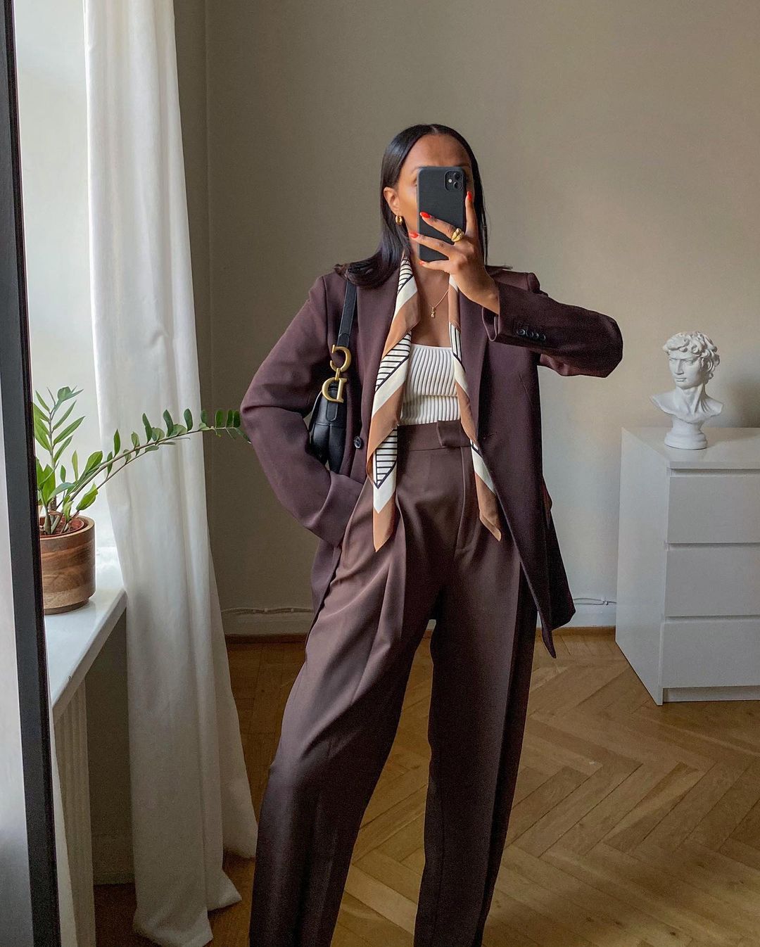 6. Brown Go well with + Ribbed Tank + Silk Scarf
