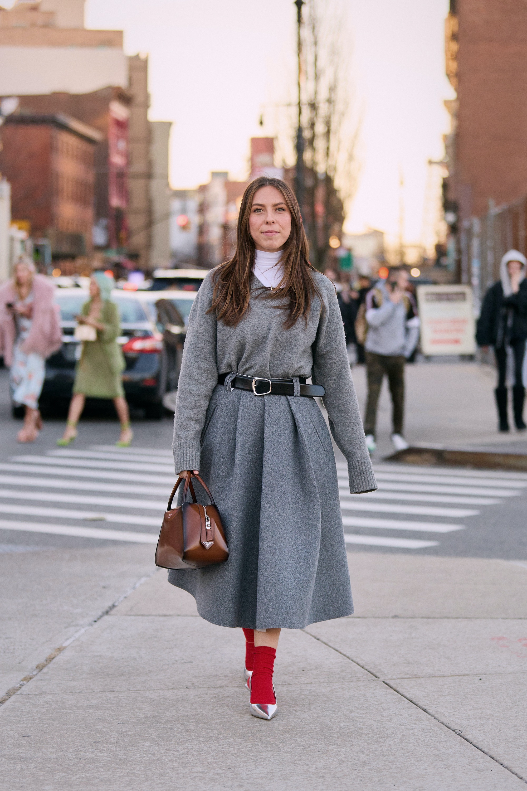 Model Notes: A wool skirt will maintain you heat without having a cumbersome coat. Match a jumper in the identical tone, and if you happen to’re feeling assured, end the look with a daring shoe like pink.