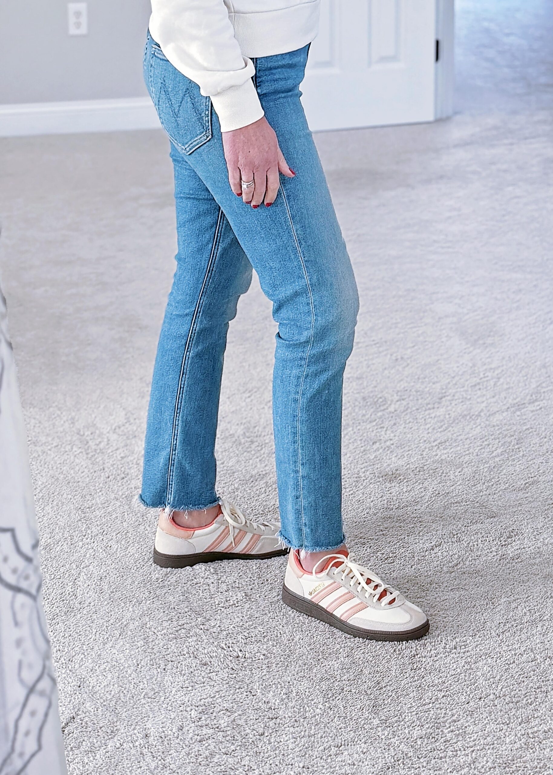 Chelsea Half Zip Sweatshirt (S) // MOTHER Dazzler (29) // adidas Handball Spezial Sneaker in Cream White/Coral/ Coral (8)