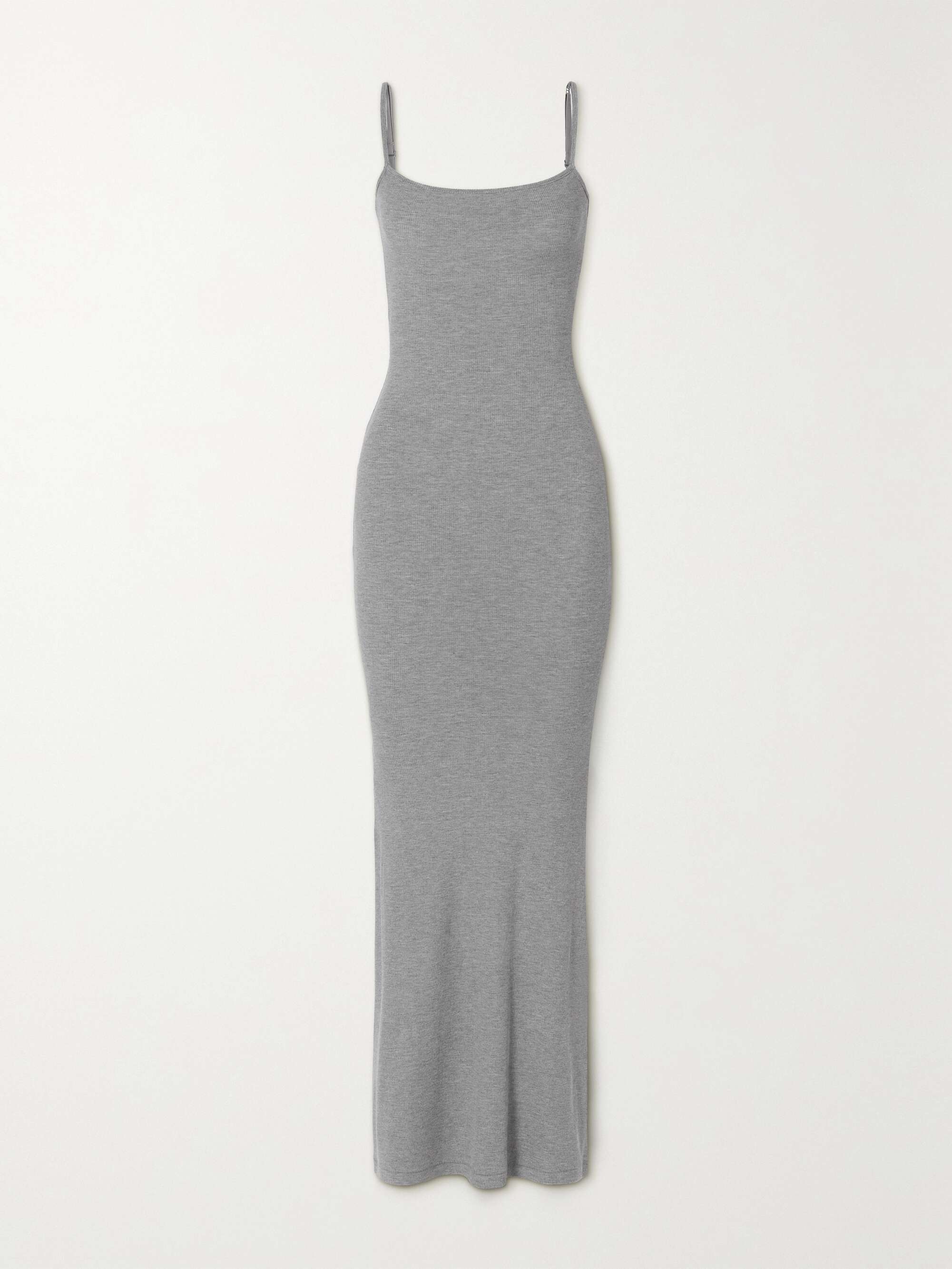 SKIMS Mushy Lounge Ribbed Lengthy Stretch-Modal Slip Gown – Heather Gray £80